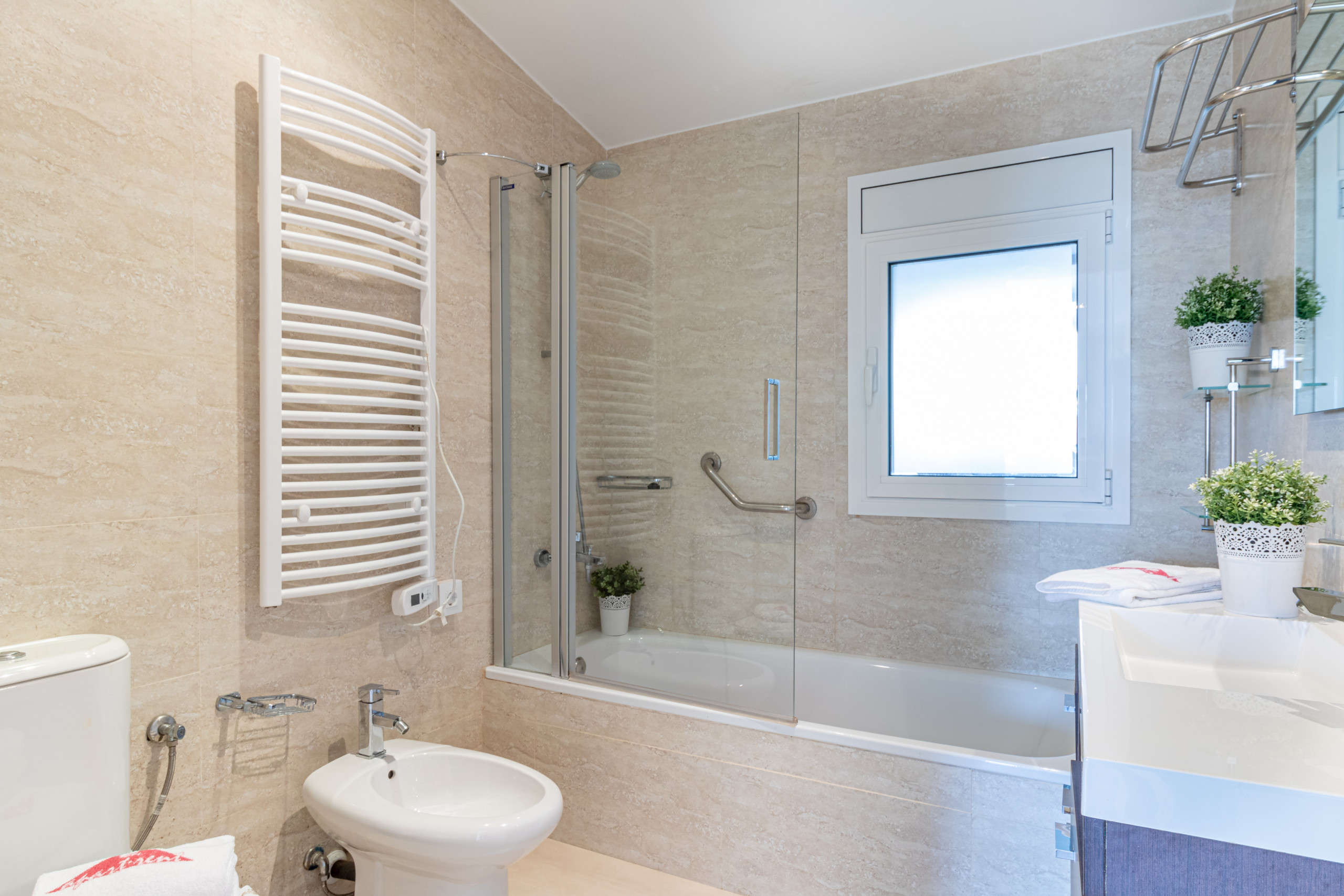 De woning beschikt over tuinmeubilair, omheind perceel, terras, barbecue, strijkfaciliteiten, Wi-Fi, verwarming met warmtepomp, airconditioning in het hele huis, privézwembad en parkeerplaats buiten. Satelliet-tv (talen: Spaans, Duits, Frans) zorgt voor entertainment en comfort.