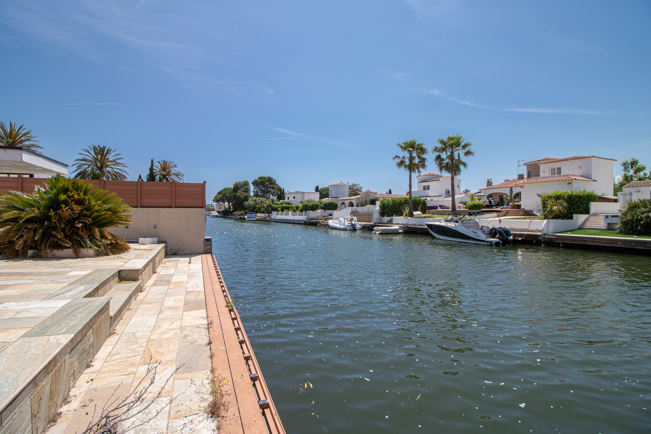 Gelegen in een gezinsvriendelijke wijk binnen een rustige residentiële omgeving, ligt de villa dicht bij belangrijke voorzieningen: slechts 2 km van het zandstrand van Empuriabrava, 2 km van de supermarkt, 15 km van de golfbaan Peralada, 20 km van het AVE/TGV treinstation Figueres en 65 km van de luchthaven Girona. De villa heeft tevens een privé aanlegplaats aan het kanaal, ideaal voor boottochten en watersportactiviteiten.
