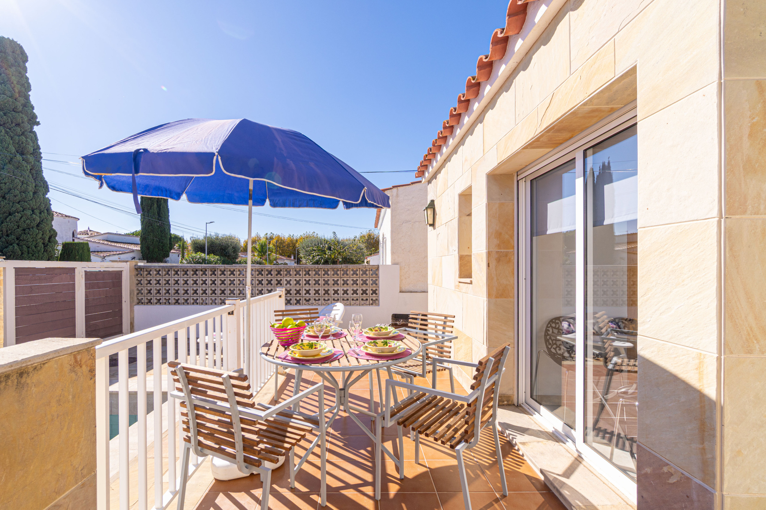 It is located 800 m from the supermarket, 2 km from the sandy beach “Empuriabrava”, 10 km from the water park “Aquabrava”, 16 km from the “Peralada” golf course, 20 km from the “Ave/Tgv Figueres” train station, and 65 km from the “Girona” airport. It is in an ideal area for families, within a residential complex.